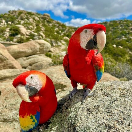 Lagu is not just a beauty to behold; he’s also incredibly intelligent and social. Calico Macaws are renowned for their strong bonds with their owners, exceptional mimicry skills, and lively, curious nature. Whether you’re an experienced bird enthusiast or a first-time parrot owner, Lagu’s affectionate temperament and engaging personality will brighten your home and heart.